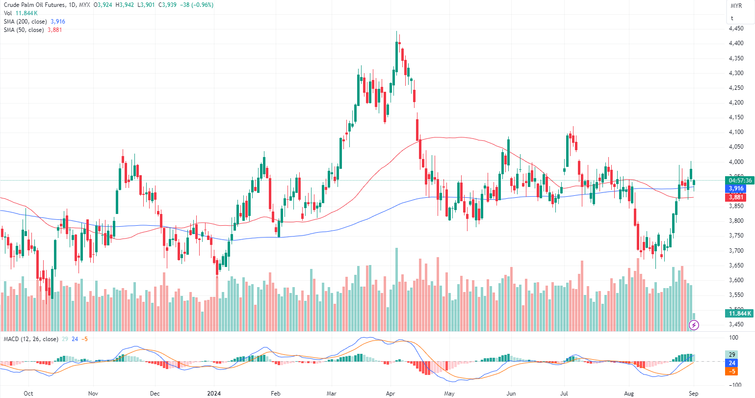 FCPO Nov month dropped 38 points or 0.96% to 3939 closed lower at midday. Malaysian palm oil futures declined on Monday, influenced by movements in the Dalian market, while the U.S. soy oil market remained closed due to a holiday.