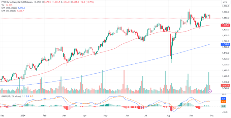 FKLI Oct month dropped 10.5 points or 0.63% to close lower at 1663.5. Selling on Bursa Malaysia increased on Friday as investors opted to take profits amid a lack of new catalysts.