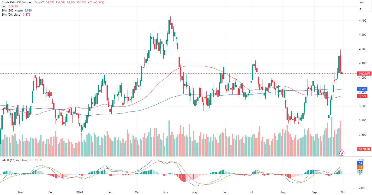Palm prices seem remain supported in upside bias, however we anticipate technical correction to continue in place, with sell on rebound remain the main strategy, beware of any sentiment changes. The immediate support and resistance levels are identified at 4008 and 4045, respectively.