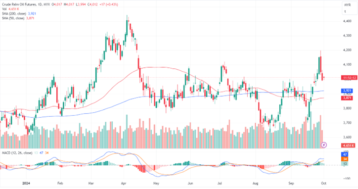 FCPO Dec month contract dropped 56 points 1.38% to close lower at 3995. Malaysian crude palm oil futures finished the month with overall gains but fell on Monday, marking the second straight session of losses. A stronger ringgit dampened sentiment, and traders were cautious as palm oil continues to be priced at a premium compared to competing oils.