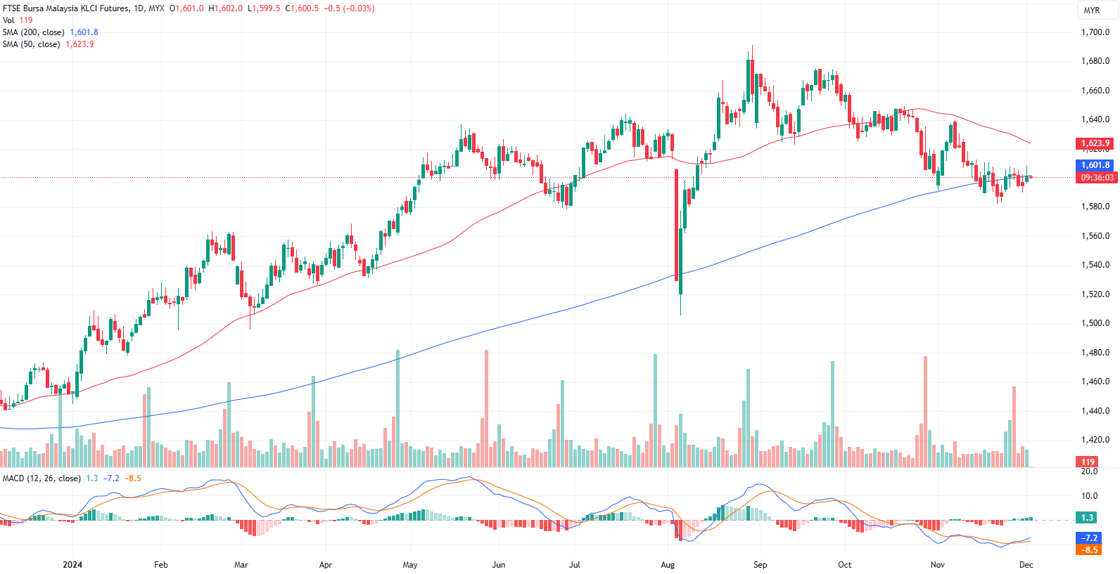 16FKLI Dec month rose 6 points or 0.38% to closed higher at 1601. The FBM KLCI gave up most of its earlier gains as investors swiftly took profits amid rising external uncertainties. Meanwhile, plantation stocks continued their rally, driven by the ongoing upward trend in crude palm oil prices.