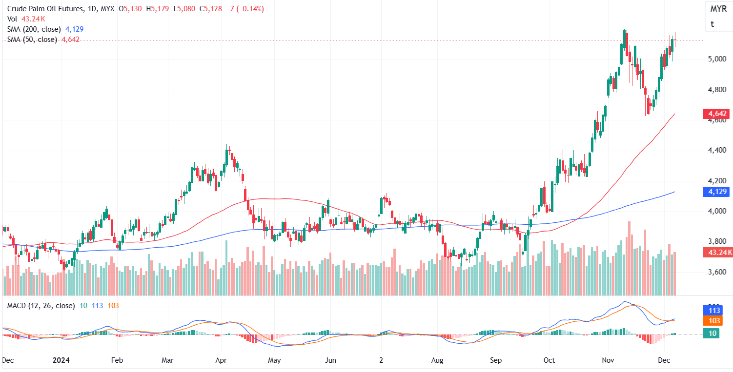 FCPO Feb month contract dropped 7 points or 0.14% to close lower at 5128. Malaysian crude palm oil futures fell on Friday due to reduced supply concerns, as weather conditions improved in Malaysia, the world's second-largest producer. However, the contract still posted a second consecutive weekly gain.