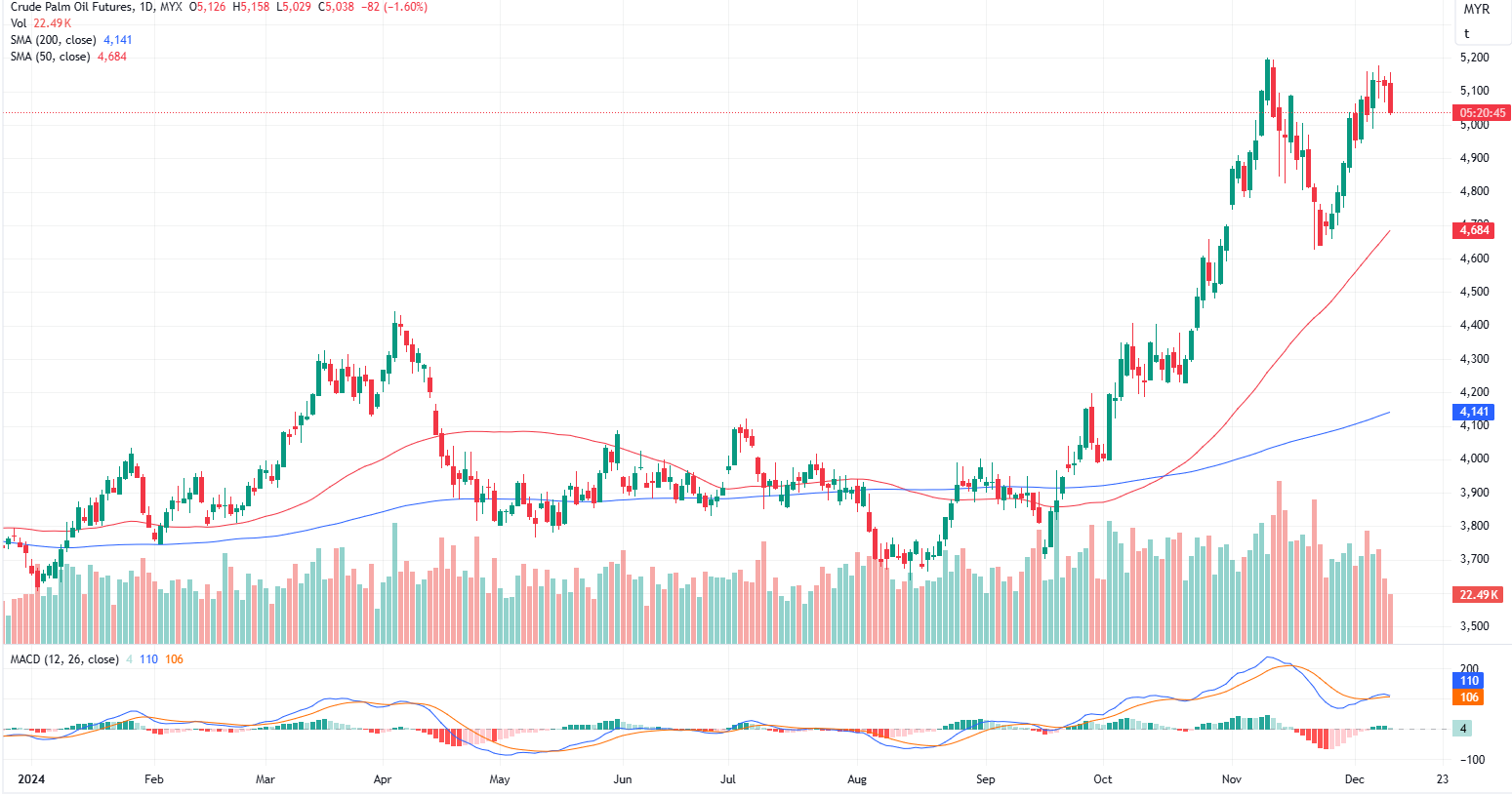 FCPO Feb month dropped 82 points or 1.60% to closed lower at 5038 on midday session. Malaysian crude palm oil futures climbed on Tuesday, supported by gains in soyoil on the Dalian exchange, as traders anticipated the release of data from the Malaysian Palm Oil Board (MPOB) later in the day.