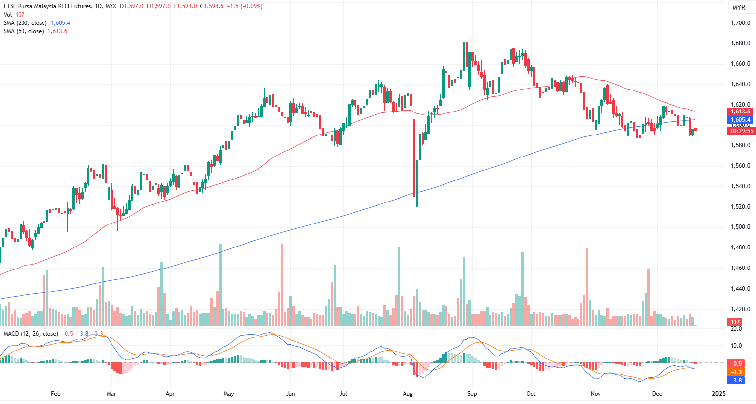 FKLI Dec month rose 5.5 points or 0.35% to closed higher at 1596. The FBM KLCI rebounded on Wednesday, ending a two-day losing streak amid broadly positive regional markets.