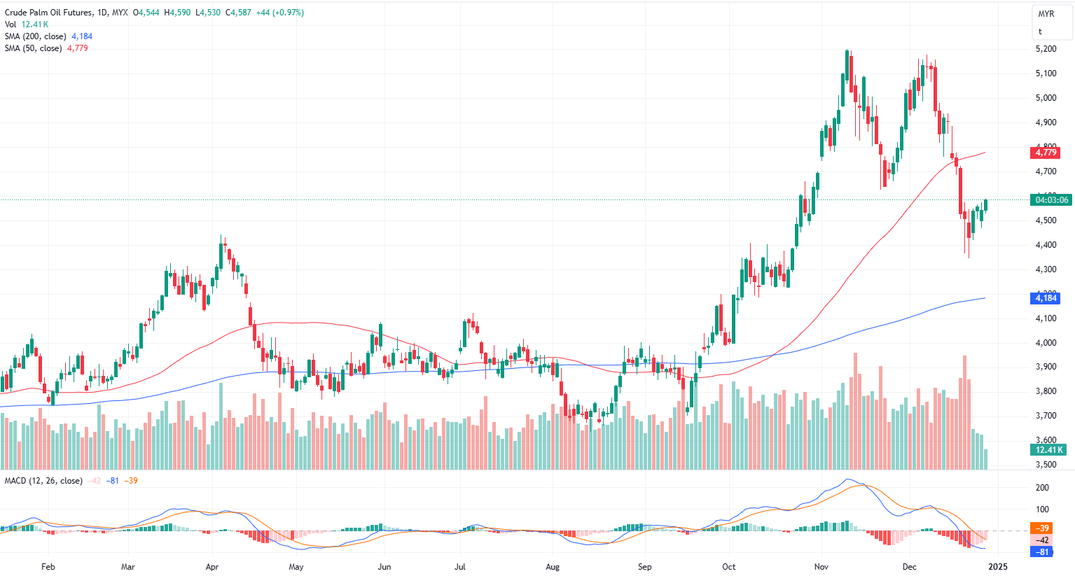 FCPO Mar month rose 44 points or 0.97% to closed higher at 4587 on midday session. Malaysian crude palm oil futures opened slightly higher on Friday, poised to record a weekly gain after a decline in the previous session, supported by the strength in rival edible oils.