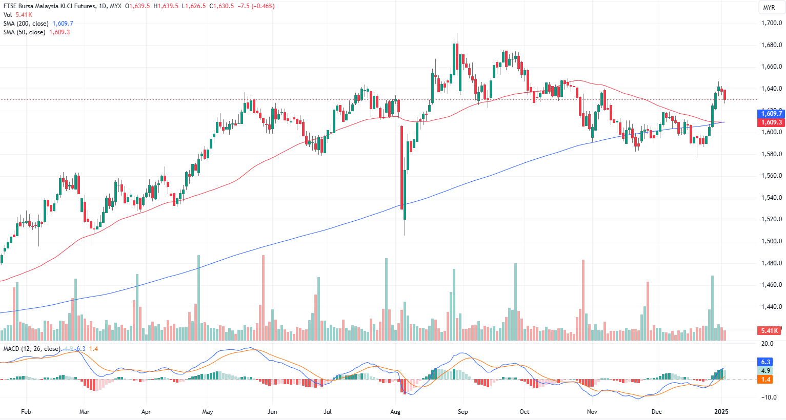 FKLI Jan month dropped 7.5 points or 0.46% to closed lower at 1630.5. The FBM KLCI continued its downward trend on Friday session, closing lower for the second straight day amidst mixed regional market sentiment.