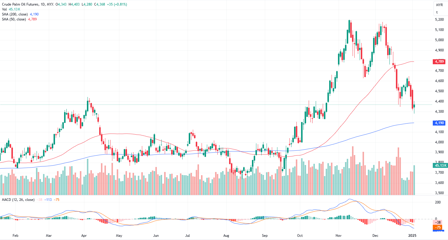FCPO Mar month contract rose 35 points or 0.81% to closed higher at 4368. Malaysian palm oil futures ended higher on Friday but recorded a 5.41% weekly loss, reversing the gains from the prior week.