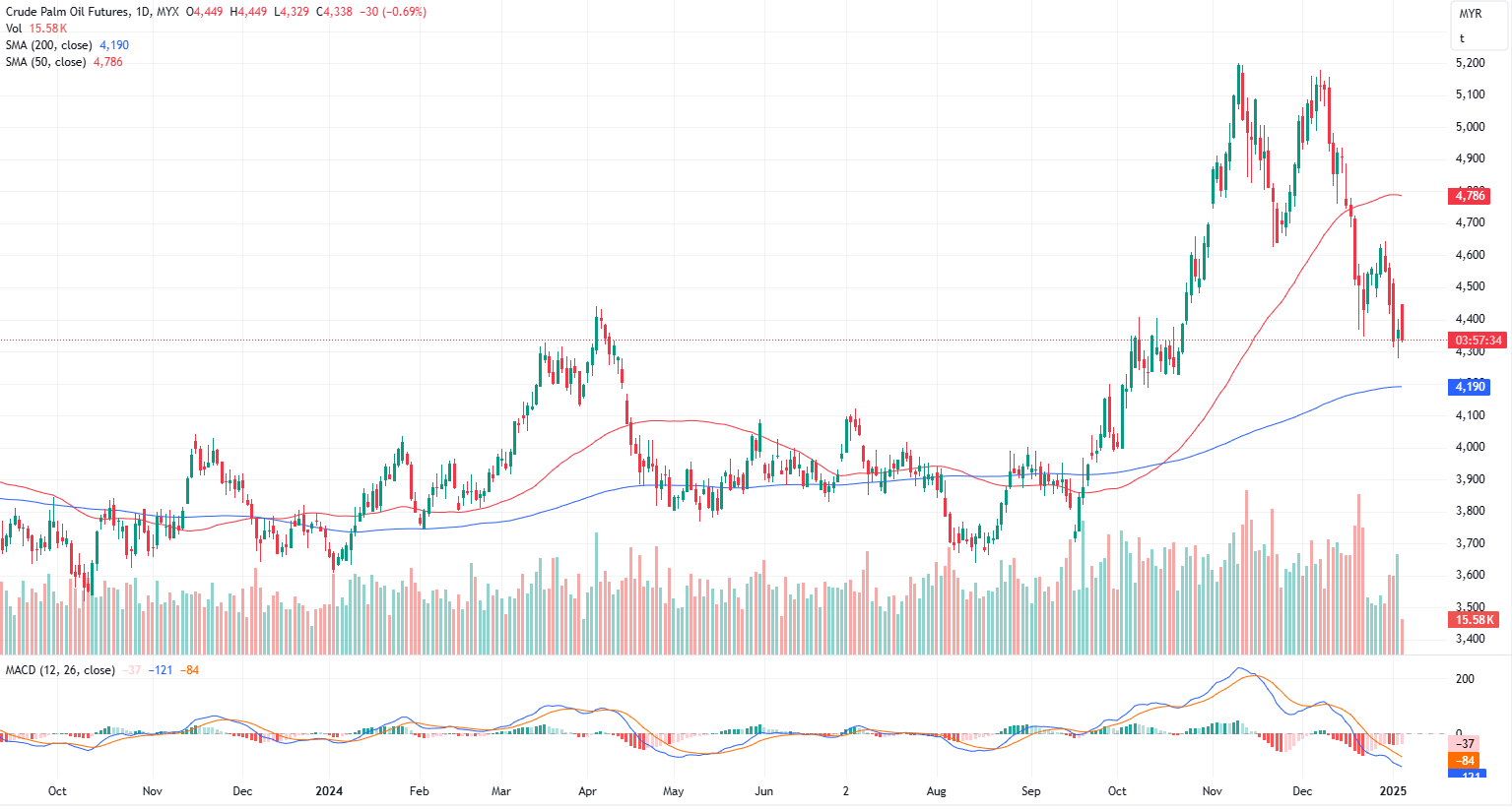FCPO Mar month dropped 30 points or 0.69% to closed lower at 4338 on midday session. Malaysian crude palm oil futures opened higher on Monday for the second straight session, driven by gains in Dalian palm olein and Chicago soyoil.