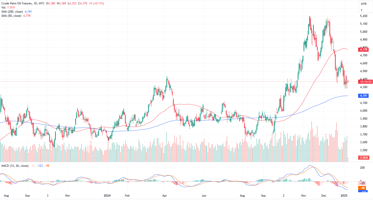 FCPO Mar month contract rose 27 points or 0.62% to closed higher at 4365. Malaysian crude palm oil futures closed higher on Tuesday, recovering from earlier declines, though gains were limited by weaker soyoil prices and subdued export demand.