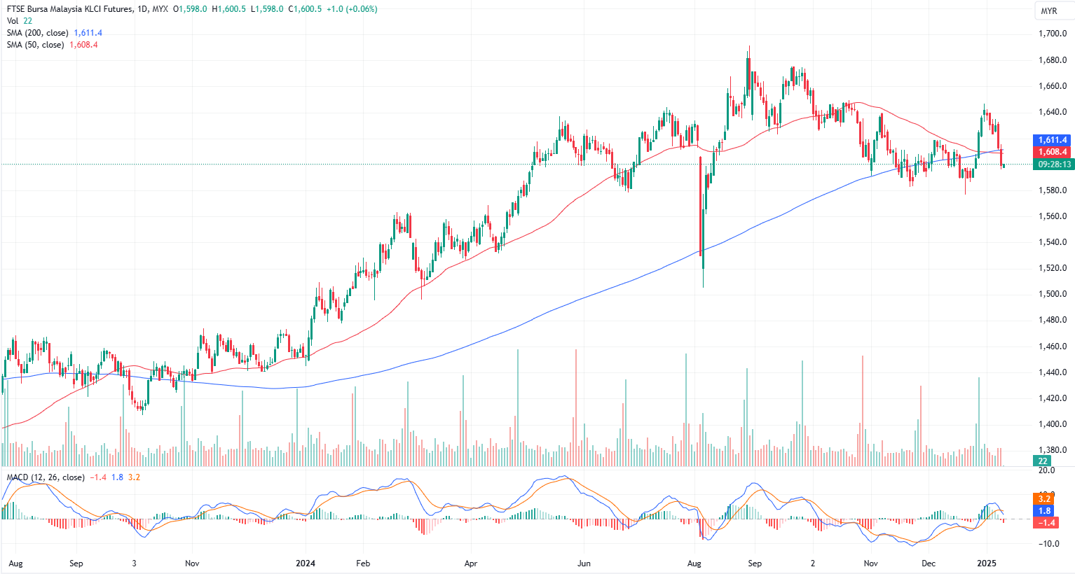FKLI Jan month dropped 13.5 points or 0.84% to closed lower at 1599.5. Selling persisted on Bursa Malaysia on Thursday session, driven by a global bond sell-off that has dampened investor interest in equities.