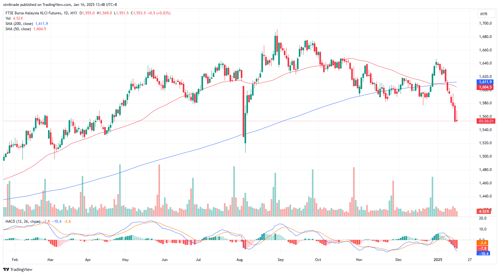 FKLI Jan month dropped 0.5 point or 0.03% to closed slightly lower at 1553.5 on midday session. The rebound in the domestic market was short-lived as gains in equity prices faded due to continued selling pressure from foreign funds.