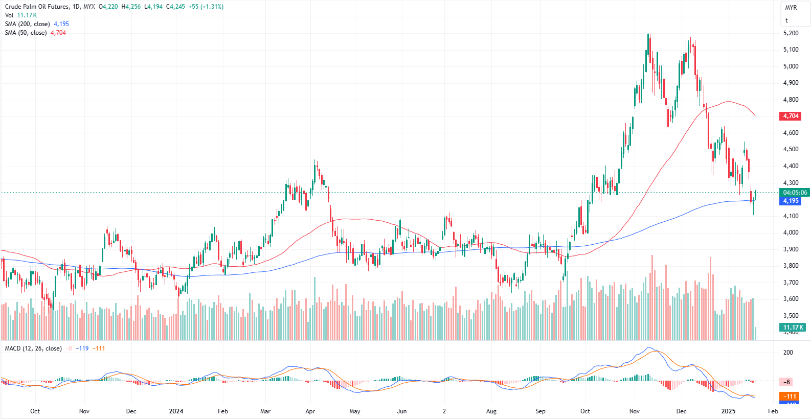 In daily chart, the palm price continues go higher and reached another day high at 4256, remain trading within the downward channel range, new support see at 4230 to 4235, support above this line could remain trading in positive note. Resistant range spot at 4255 to 4260 range, to trade further higher, the price must break above this range. Beware of the strong resistant at 4280 to 4285 range. The immediate support and resistance levels are identified at 4231 and 4255, respectively.