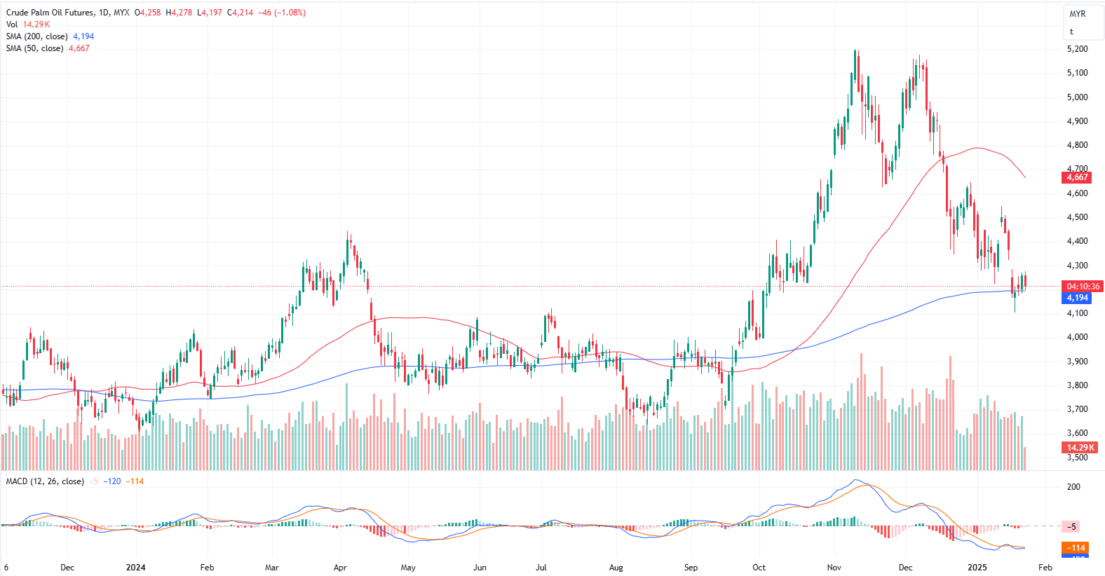 FCPO Apr month dropped 46 points or 1.08% to closed lower at 4214 on midday session. Malaysian crude palm oil futures ended a three-session winning streak on Wednesday, pressured by declines in Chicago soyoil and Dalian palm oil, along with sentiment dampened by a stronger ringgit.