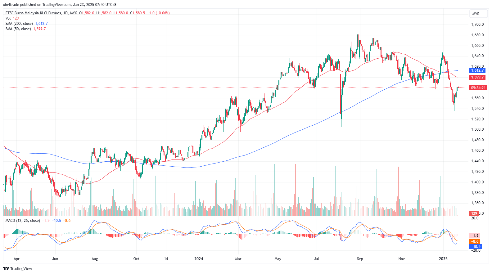 FKLI Jan month rose 9 points or 0.57% to closed higher at 1581.5. The FBM KLCI extended its gains for the fourth straight day on Wednesday, driven by strong overnight performance on Wall Street and Bank Negara Malaysia's decision to maintain the Overnight Policy Rate (OPR) at 3.0%.