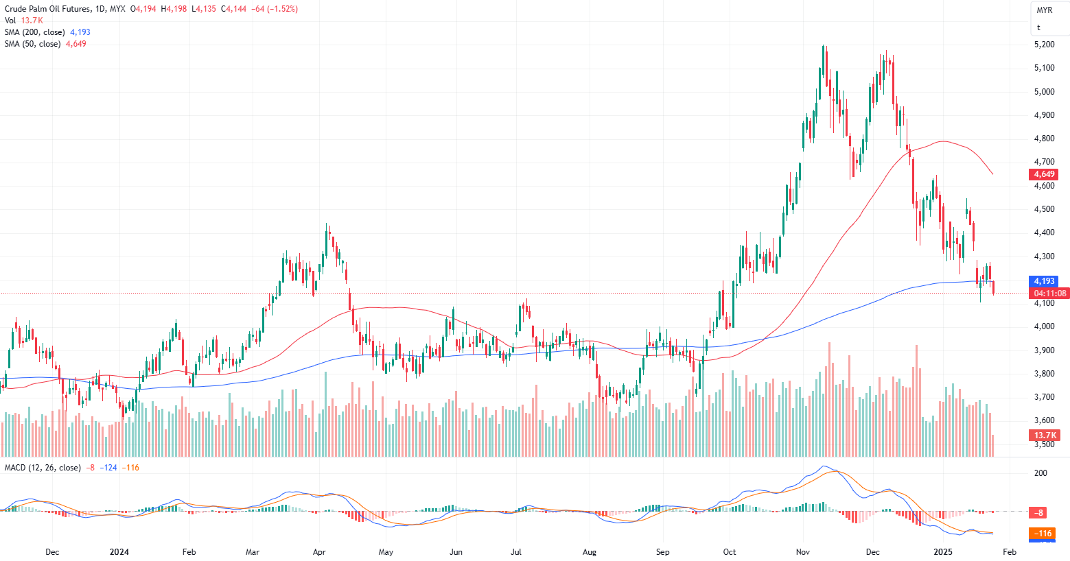FCPO Apr month dropped 64 points or 1.52% to closed lower at 4144 on midday session. Malaysian crude palm oil futures fell for the second consecutive session at Thursday’s opening, pressured by weakness in rival soyoil on the Dalian market.