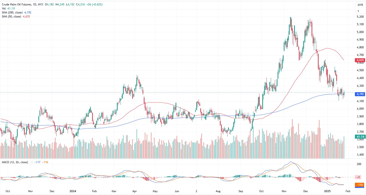 FCPO Apr month contract rose 26 points or 0.62% to closed higher at 4216. Malaysian crude palm oil futures rebounded on Friday, closing higher and securing a slight weekly gain following data from the Malaysian Palm Oil Association that revealed a drop in production.