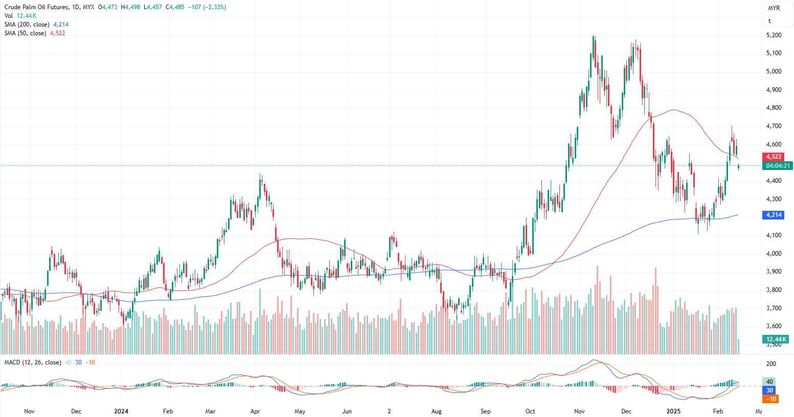 FCPO May month dropped 14 points or 0.31% to closed lower at 4485 on midday session. Malaysian crude palm oil futures declined on Monday, weighed down by weaker Dalian oils, lower crude oil prices, and a downward revision in the export forecast for the first two weeks of February.