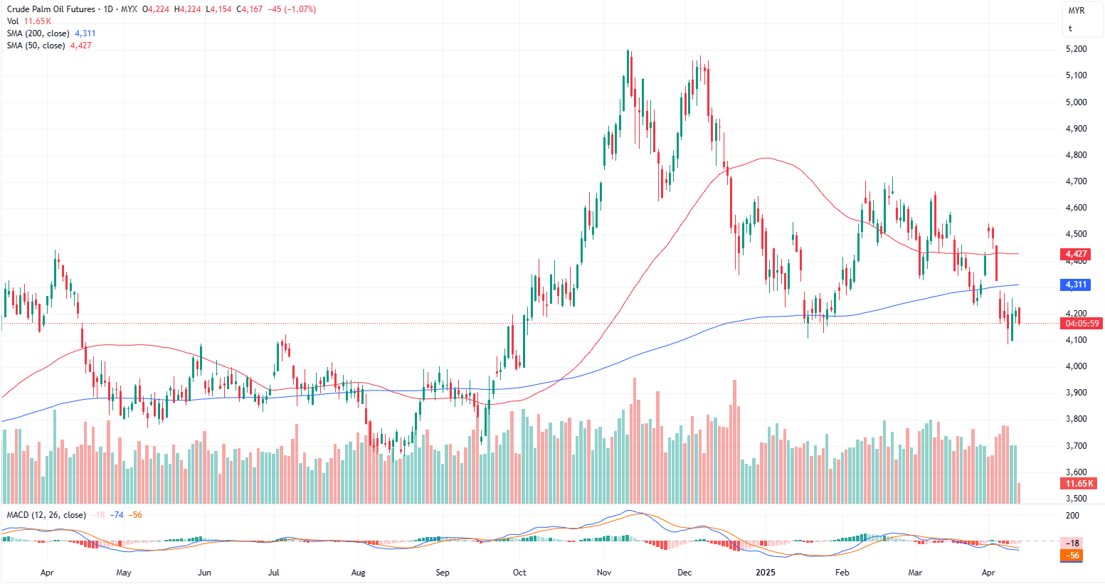 The actively traded FCPO contract, on the larger timeframe, is finding support around the 4110–4105 zone—forming a potential double bottom, last tested on 16 January—and has since shown signs of recovery. Current price action hovers near the lower end of a downward channel, suggesting limited downside momentum in the broader view. On the hourly chart, selling pressure was seen during the morning session, with the price now forming a sideways consolidation. Immediate support is at 4160–4155; a break below this range may lead to further downside. However, if the support holds, we may see a rebound, with potential upside towards 4200–4205. Stay cautious of potential shifts in market sentiment. The immediate support and resistance levels are identified at 4160 and 4181, respectively.