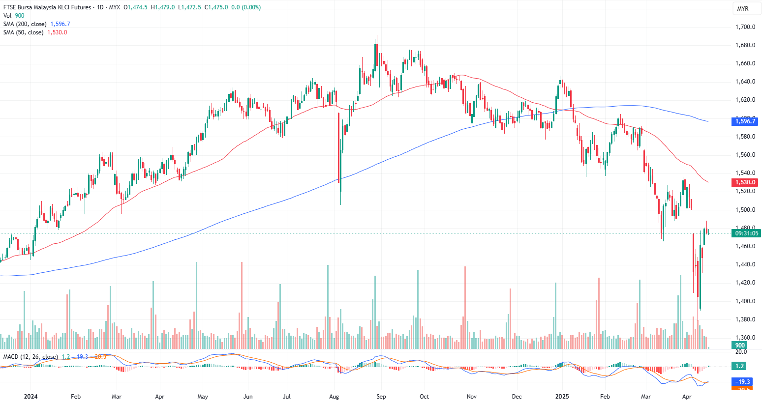 The actively traded FKLI contract continues to hover near the lower boundary of a broad downward channel on the daily chart, with key resistance located around the 1480–1475 zone. This area will be critical in determining whether buying momentum can gain traction or if the prevailing downside bias will remain intact. On the shorter timeframe, the index is finding support around the 1465–1468 range. We remain buy on retracement” strategy for the next move. A breakout above the 1480–1475 resistance could trigger further buying interest toward the 1490–1492 region. However, failure to break above may lead to some technical selling or a sideways consolidation phase, with limited downside risk likely contained near the 1465–1468 support zone. Stay cautious of potential sentiment changes. Immediate support and resistance levels are identified at 1468 and 1480, respectively.