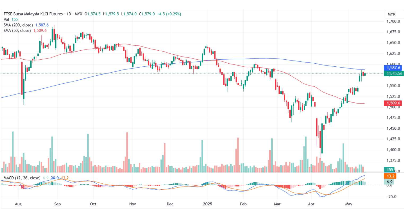 The actively traded FKLI contract closed slightly lower in the previous session, trading within a narrow range as the market entered a sideways consolidation phase. The index recorded a high around 1583 and a low near 1572, reflecting a neutral sentiment. Up if the index holds above the 1576–1578 support range. However, a break below this level could trigger further selling pressure, potentially dragging the index down toward the 1566–1567 zone. sentiment changes. Immediate support and resistance levels at 1578 and 1583, respectively.