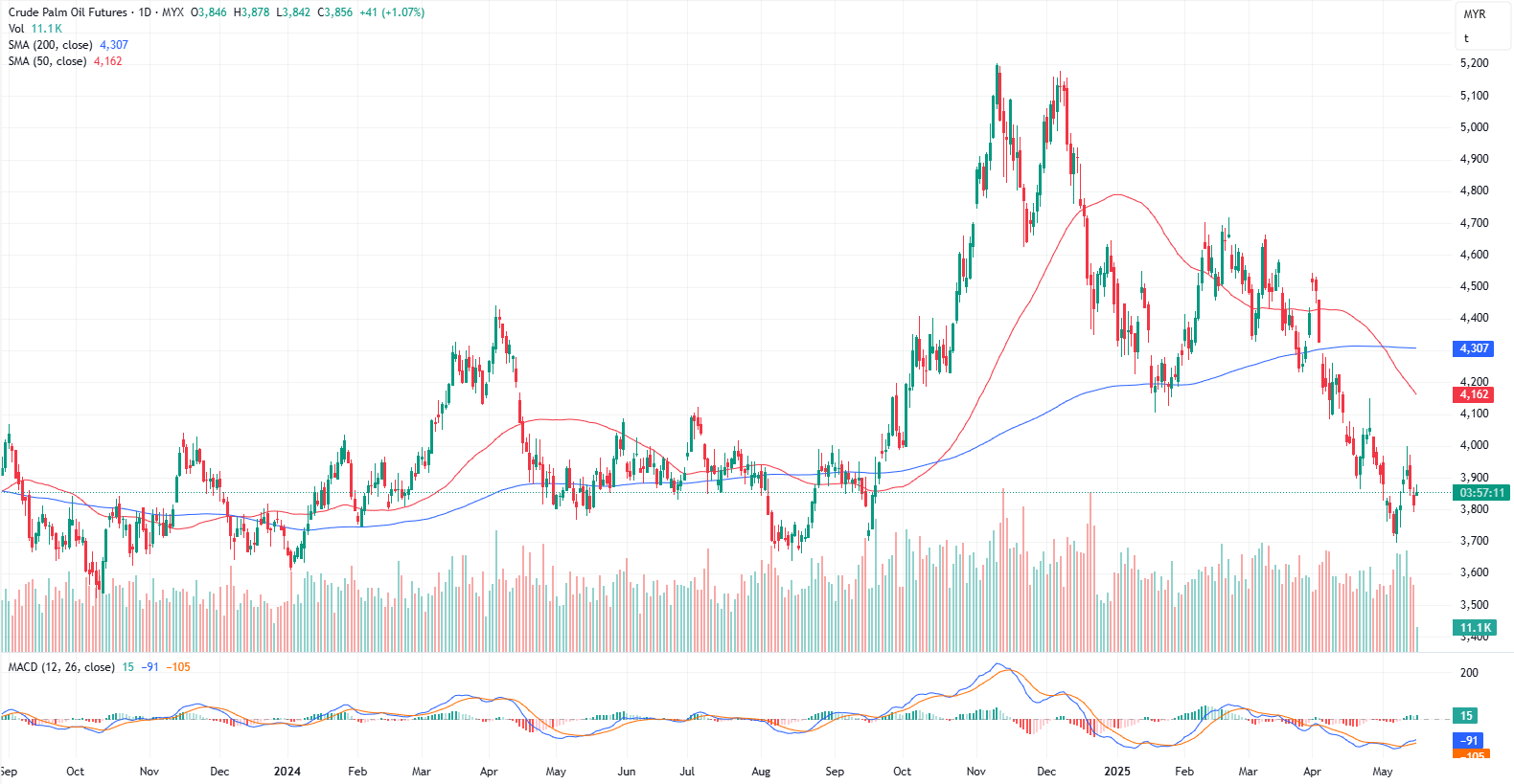 The actively traded FCPO contract, from a broader perspective, continues to move within a downward channel. Recently, the price encountered resistance in the 3870–3875 range. On the downside, immediate support is seen at 3795–3800. We anticipate sideways consolidation with potential technical buying toward the resistance zone. However, if the price fails to break above this level, selling pressure may resume. Conversely, a successful breakout above the resistance could lead to continued buying interest, potentially pushing prices above the 3900 range. Stay cautious of potential shifts in market sentiment. The immediate support and resistance levels are identified at 3831 and 3858, respectively.