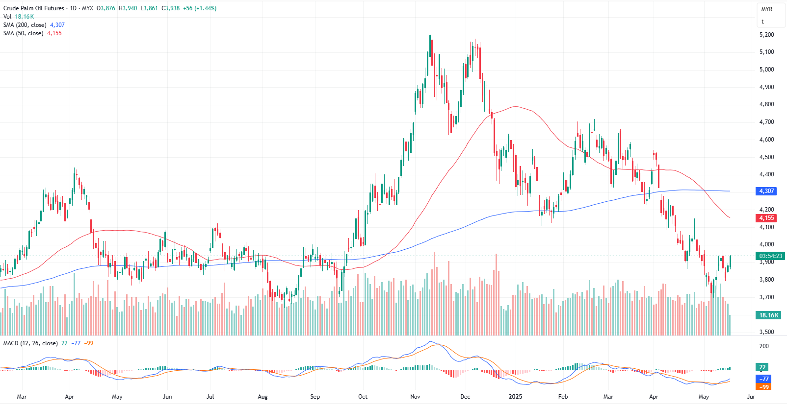 The actively traded FCPO contract continues to move within a downward channel from a broader perspective. Since Monday night’s session, prices have found support in the 3895–3890 range and have continued to climb. We maintain a buy-on-retracement strategy, provided the price holds above the new support zone at 3935–3940. If this level is sustained, prices may potentially rise toward 3965 or even as high as 3992. However, if the support fails to hold, selling pressure could resurface. The key support zone at 3895–3890 remains crucial for maintaining the current upside bias. Stay cautious of potential shifts in market sentiment. The immediate support and resistance levels are identified at 3913 and 3939, respectively.