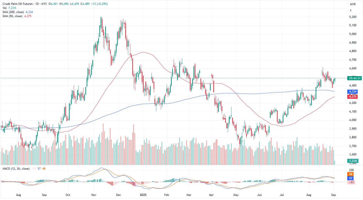 The actively traded FCPO contract regained its buying momentum after an oversold action last week. On the daily chart, prices seem to halted the downward direction after reaching immediate support around 4370. The reverse to the upside has broken the first resistant at 4450 and may target 4500 – 4550 next. Beware of any potential sentiment changes. The immediate support and resistance levels are pinpointed at 4450 and 4550, respectively.
