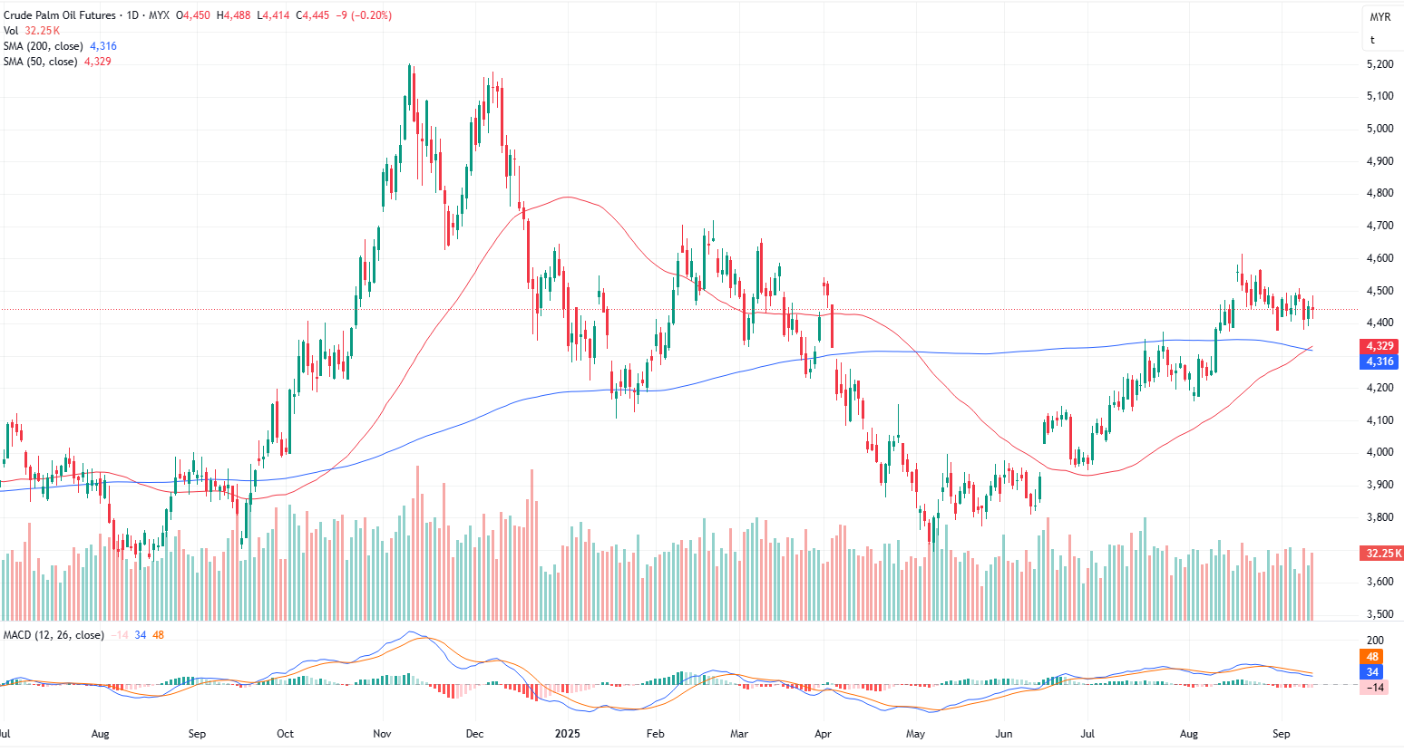 The actively traded FKLI contract rolls into the December month starting today, and we may see a potential gap-up at the open, tracking consecutive gains in rival oil markets. From a technical perspective, FCPO prices continue to trade within a broad uptrend on the daily chart, with strong support seen at the 4,380–4,375 range, forming a double-bottom pattern. On the hourly chart, the formation of higher lows suggests the potential for further upward movement. Key resistance is located at the 4,500–4,495 range. A breakout and sustained move above this level could propel prices toward 4,520, with further upside potential toward 4,547. However, failure to breach this resistance may trigger selling pressure, albeit with limited downside risk. Immediate support is seen at 4,450–4,445, which is crucial to sustaining the recent bullish momentum.  Beware of any potential sentiment changes. The immediate support and resistance levels are pinpointed at 4476 and 4498, respectively.
