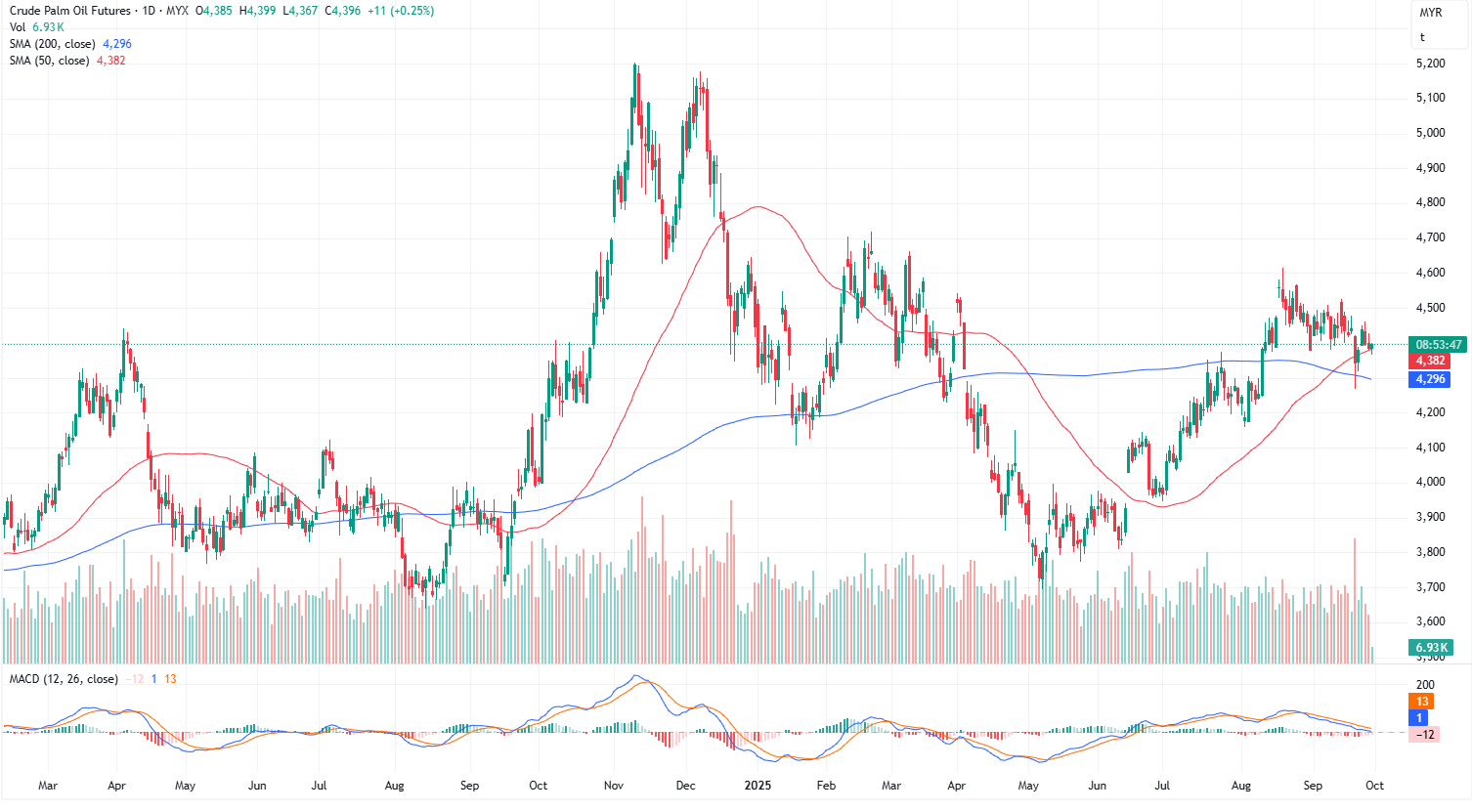 FCPO Dec month down 12 points or 0.27% to closed at 4385. Malaysian palm oil futures remained flat to supportive as production is coming down and expect export to rise in the coming months on festive season demand.