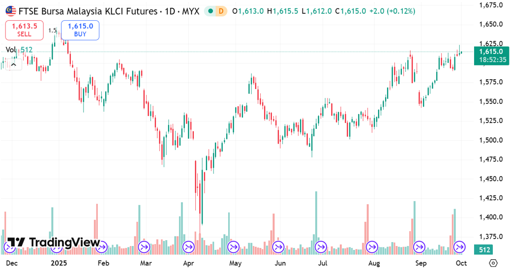 FKLI Oct month rose +2.5 points or 0.15% closed at 1613. The FBM KLCI closed near flat on previous session amid cautious sentiment in regional market.