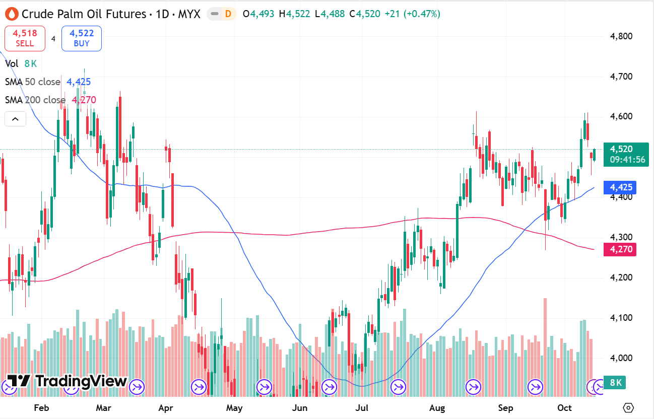 The actively traded FCPO contract was regaining support in the previous session after an early intraday selling. In the daily chart, immediate trend is still up, where supports are noticeably around 4480 - 4450, while resistant levels are seen around 4525 – 4550. A break below 4550 may invalidate the selling momentum last week, and potentially retest the 4600. Beware of any potential sentiment changes.