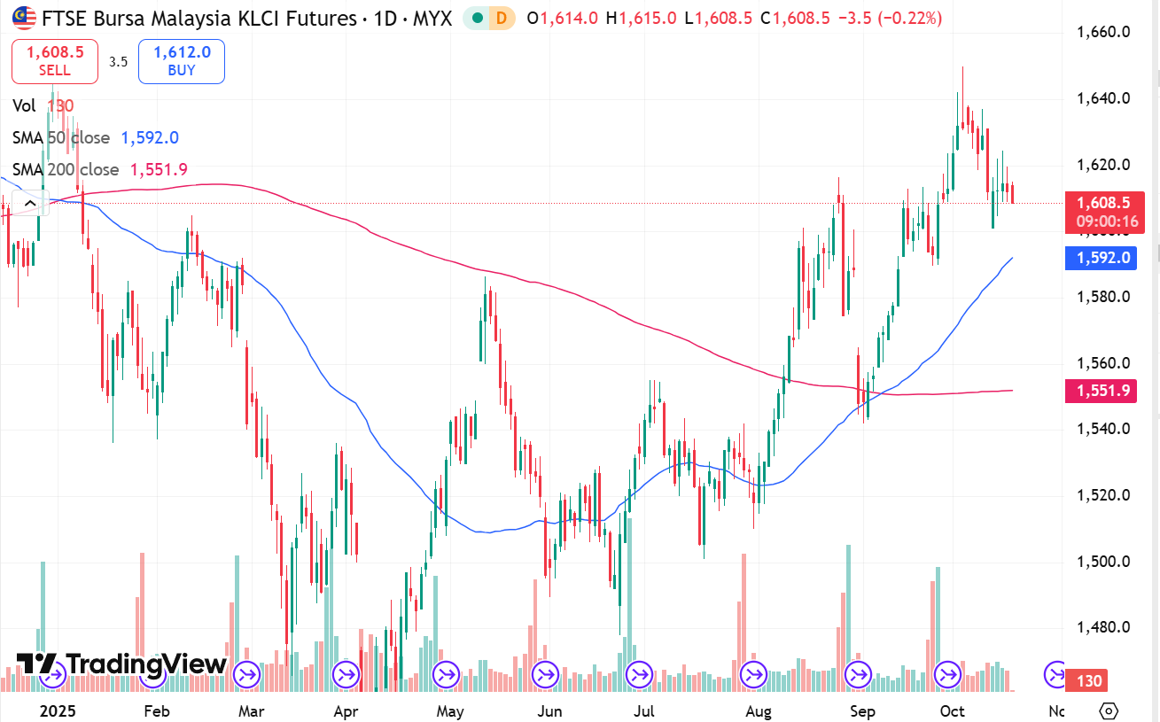 FKLI Sep month down 2 points to closed at 1612. The FBM KLCI remained weak on previous session amid volatile sentiment in regional market.