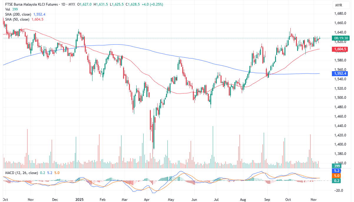 FKLI Oct month was down 2 points to closed at 1624.5. The FBM KLCI was uncertain yet supportive in the previous session.
