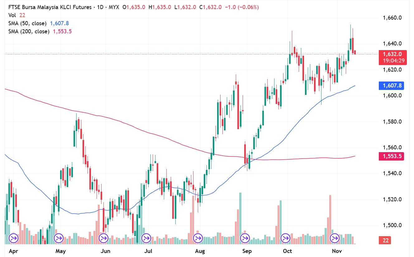 FKLI Oct month was dropped 11 points to closed at 1633. The FBM KLCI was weak throughout the day amid supportive regional markets.