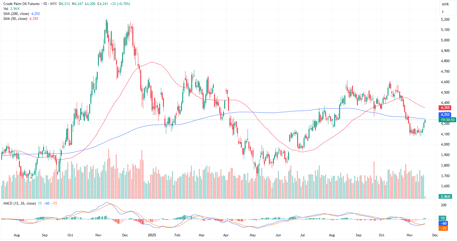 The actively traded FCPO contract in the previous session broke above the key resistance zone of 4150–4160 and continued trending higher. The new crucial support is now seen at the 4200–4190 range. As long as the price stays above this area, the buying bias is expected to remain intact. In the short term, resistance is seen at the 4240–4250 zone. A successful breakout above this level may trigger stronger buying momentum toward 4276 and possibly 4300. However, if this resistance fails to break, selling pressure may emerge, though the downside is expected to be limited. Immediate support and resistant levels are identified at 4224 and 4250 respectively. Beware of any potential sentiment changes.