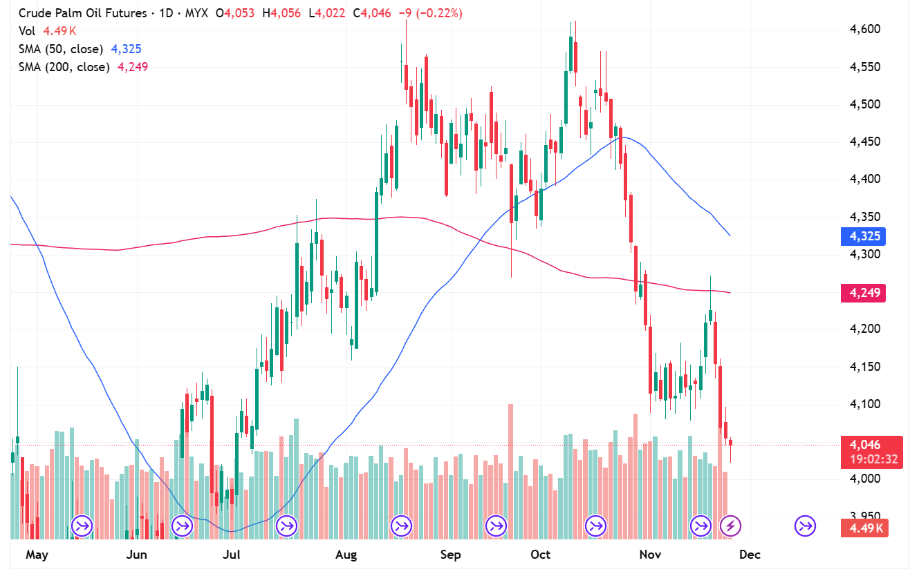 FCPO Feb month dropped 13 points or 0.32% to closed at 4055. Malaysian palm oil futures slipped in the previous sesison, continuing a third day selling as weaker rival soyoil weighed on the market.