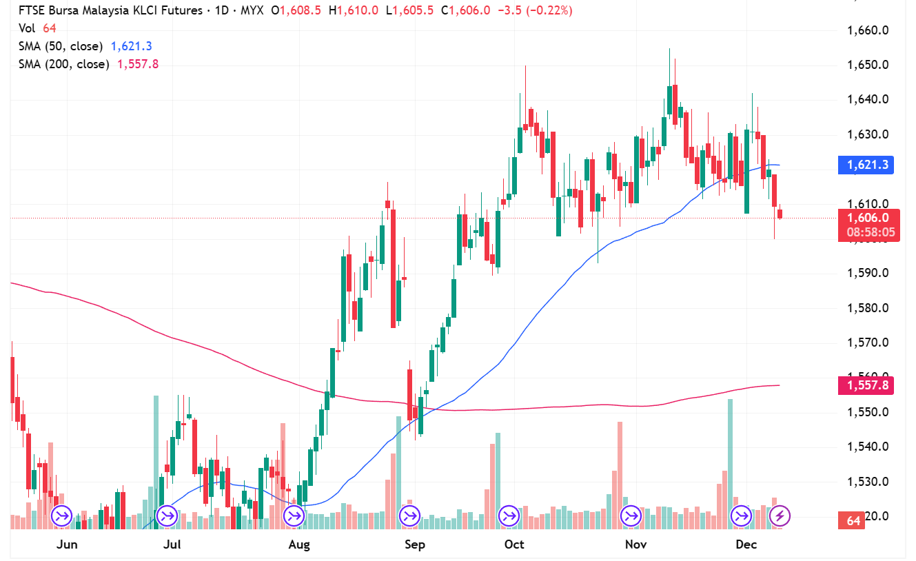 FKLI Dec month dropped 10.5 points or 0.65% to close at 1609.5. The FBM KLCI posed a sharp selling in earlier session despite the ringgit continued remained strengthened against the US dollar.