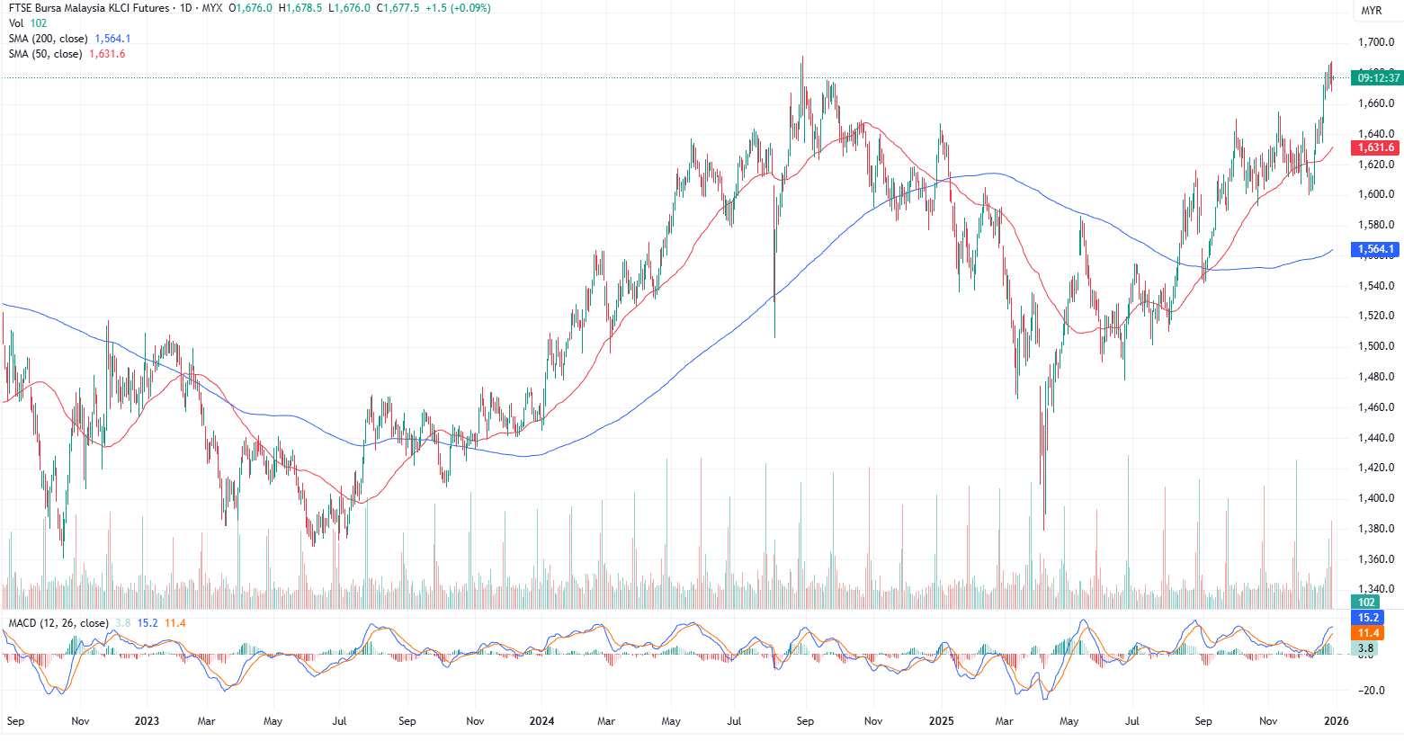 FKLI Dec month ended flat to close at 1676. Bursa Malaysia closed slightly higher on Monday, reflecting the usual year end lull in market participation.