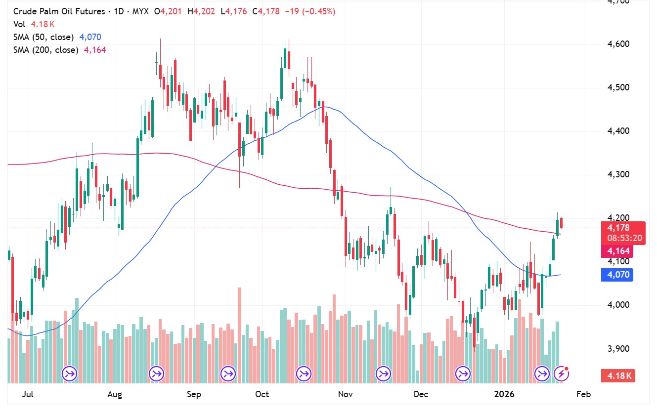 FCPO Apr month rose 44 points or 1.04% to close at 4200. Malaysian palm oil futures continues to pin at day high for 5th consecutive days reacting over strong technical play and supportive rival oils.