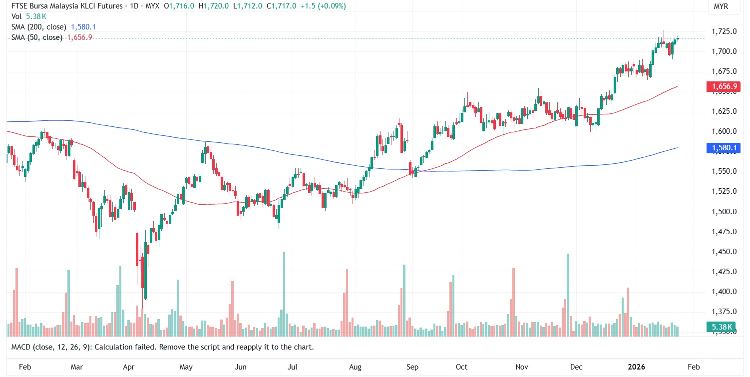 FKLI Jan month rose 1.5 points or 0.09% to close at 1717. The local benchmark index made a positive start to the weak as investors continued to lean into the narrative of economic growth and easing geopolitical tensions.