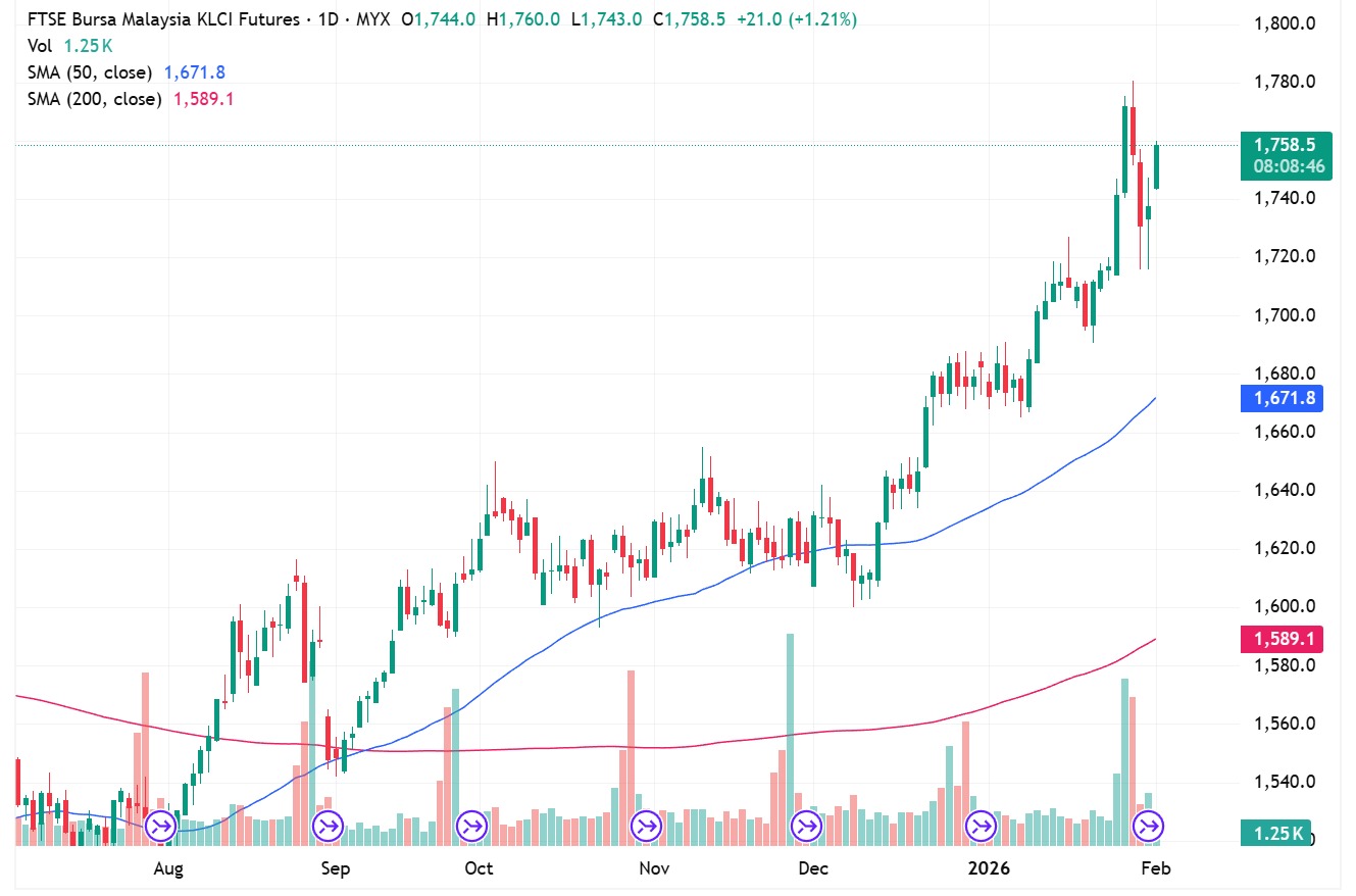 FKLI Feb month surged 20.5 points or 0.93% to closed at 1761. Short covering this morning has pushed the index up with strong ringgit in support.