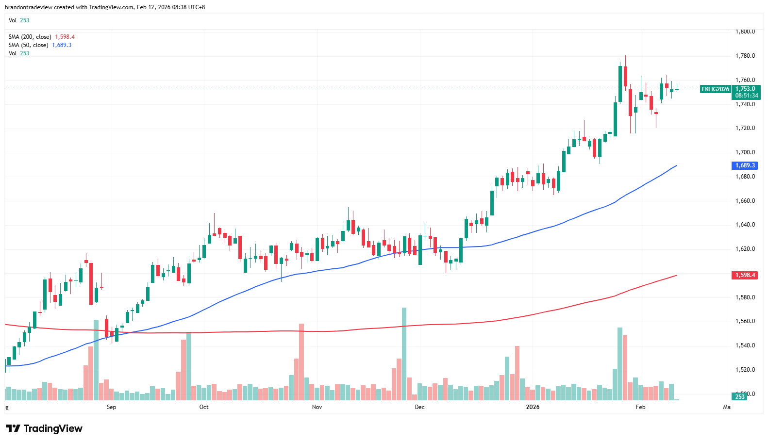 The active FKLI contract formed a Doji candlestick, signalling short-term market indecision. On the 30-minute chart, prices have consolidated within a narrow sideways range between 1746 and 1758. Traders should monitor closely for a breakout either above 1758 or below 1746, as this could determine the next directional move. A break above 1758 could open the door for further upside momentum, while a drop below 1746 could trigger a broader market decline.