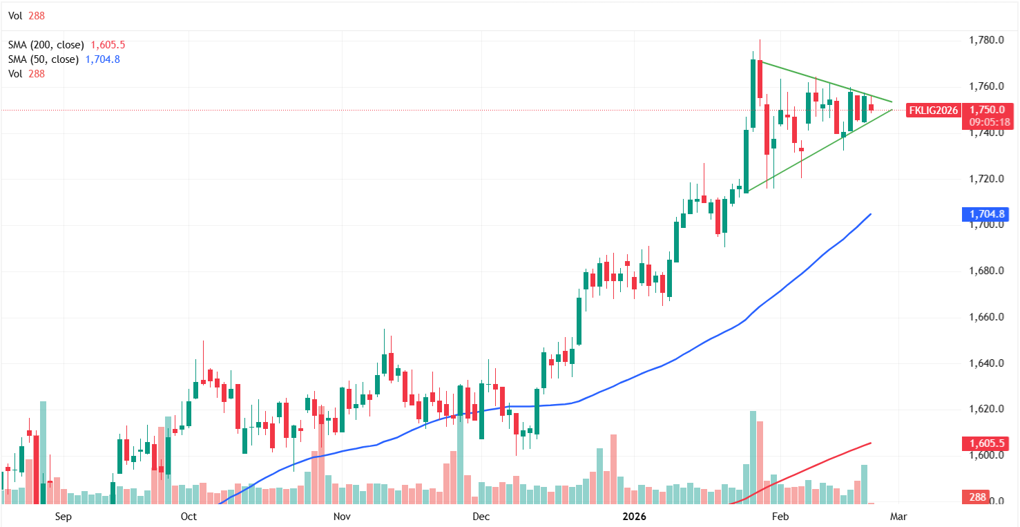 The active FKLI contract has formed is forming a triangle pattern, indicating a tightening consolidation ahead of a potential breakout. On the 30-minute chart, higher high was formed, switch from 1733 to 1745 level with a bullish engulfing candlestick. Traders should monitor closely for a breakout either above 1760 or below 1750, as this could determine the next directional move. A break above 1760 could open the door for further upside momentum, while a drop below 1750 could trigger a broader market decline.