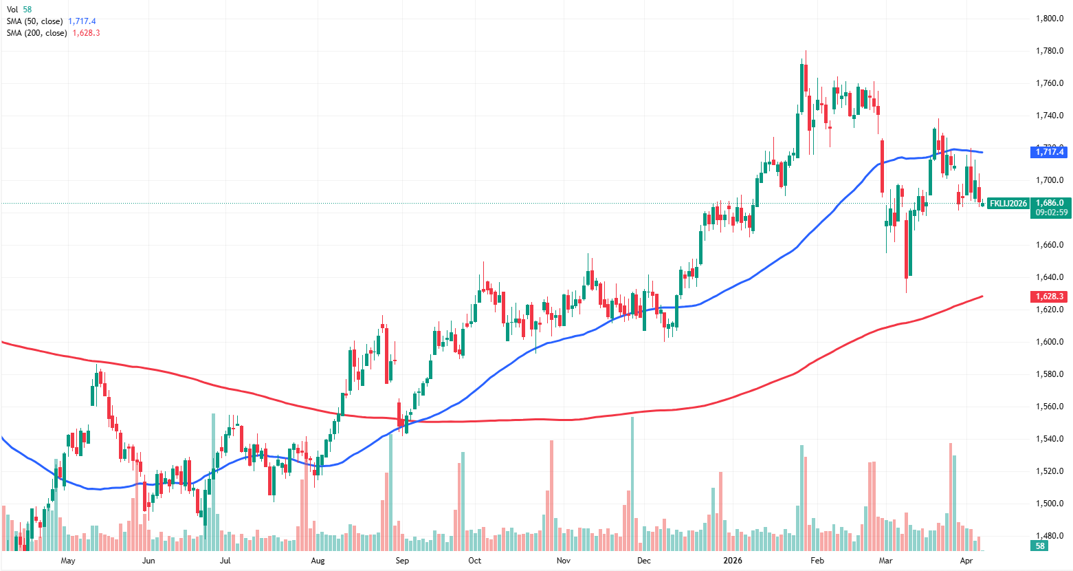 FKLI April month dropped 13 points or -0.76% to closed at 1687 on previous session. Bursa Malaysia ended lower on Monday, with the benchmark index retreating by 0.86 per cent as concerns over escalating tensions in West Asia intensified.