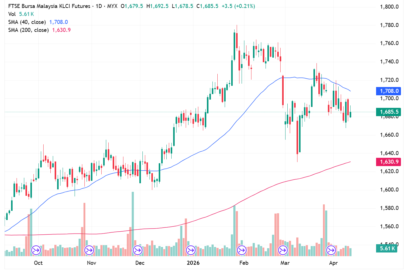 FKLI Apr month up 3.5 points or 0.21% to closed at 1685.5 in previous night session. The index holds uncertainty amid unsettled ongoing US-Iran conflict.