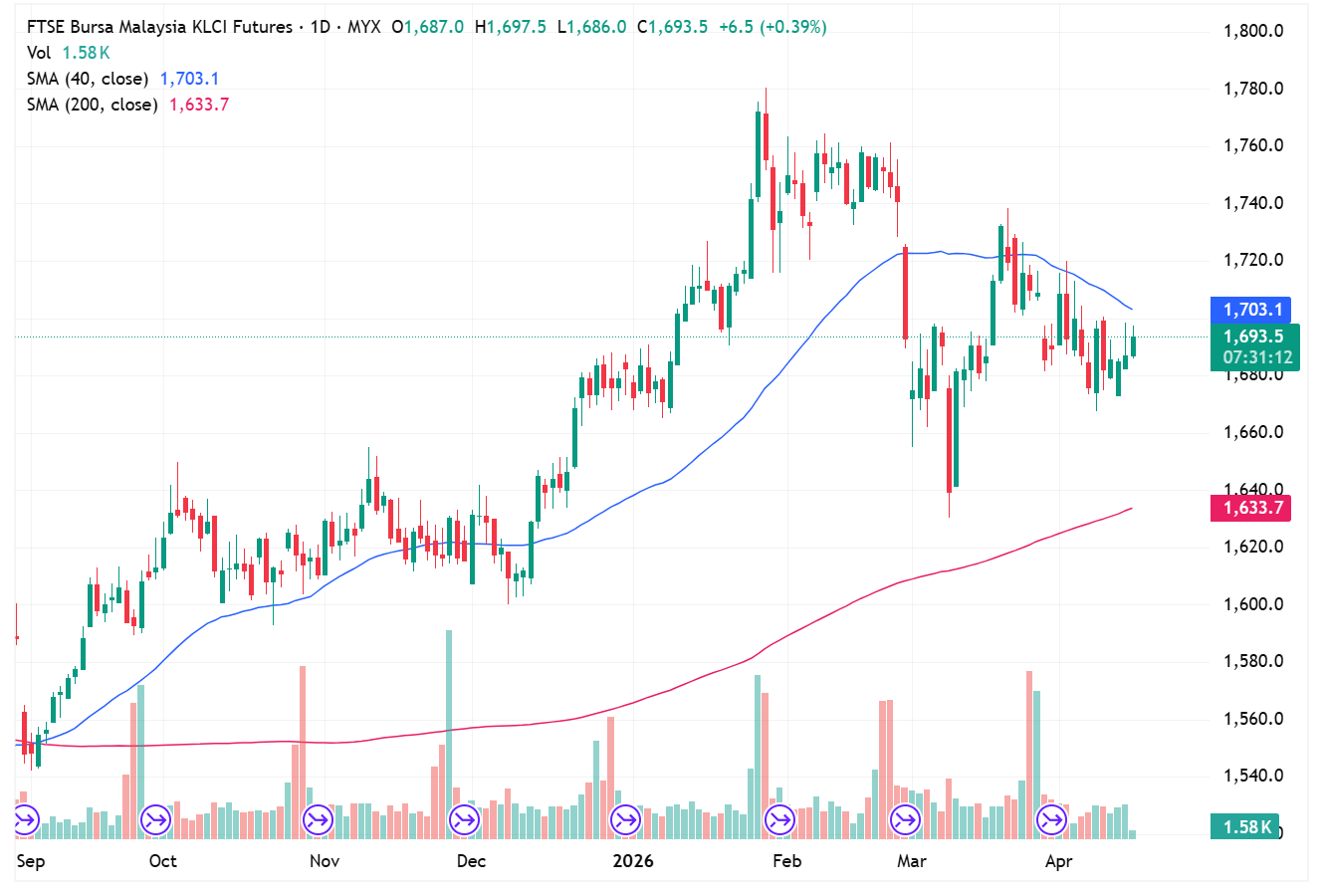 FKLI Apr month up 2 points or 0.12% to closed at 1687 in previous session. The index remained flat with unsettled ongoing US-Iran conflict creates uncertainty.