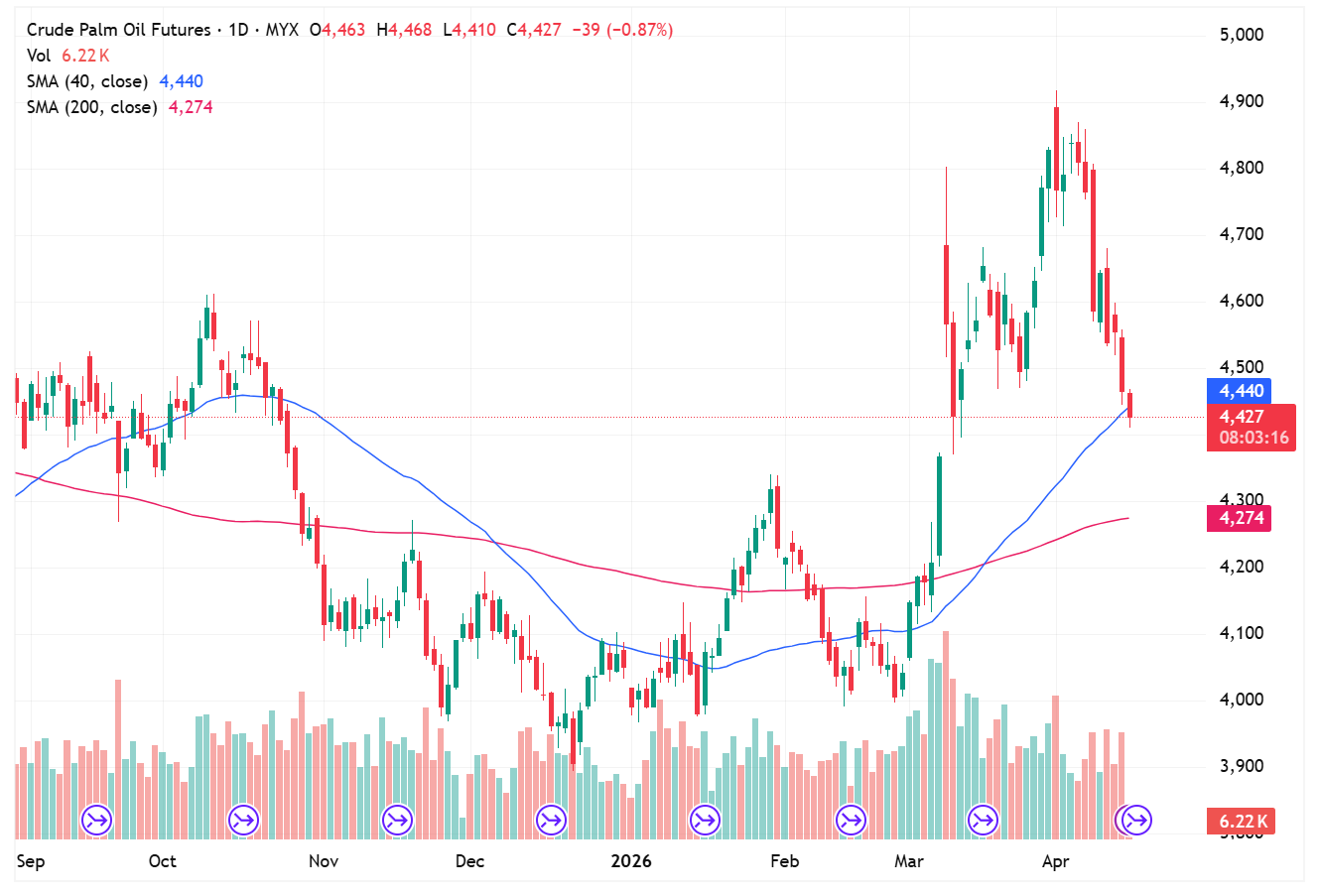 The active FCPO contract continued on the 4th consecutive day of selling. The 4470 support has broken, and is now approaching the next crucial support around 4400. Rival oils still remained weak and hasn’t shown sign of rebound. Currently would still expect market to maintain at low end throughout the day in between 4400 – 4450 before deciding a new direction. Immediate support and resistant levels are identified at 4410 and 4450 respectively. Beware of any potential sentiment changes.