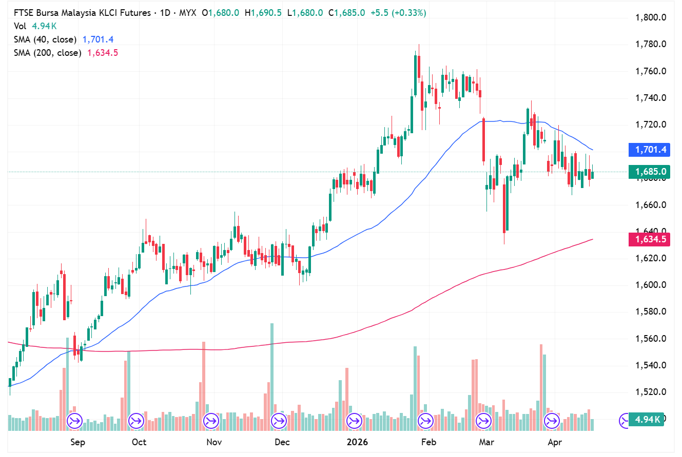 FKLI Apr month down 5.5 points or 0.33% to closed at 1685 in previous session. The index turned remained slightly weak to flat despite supportive regional market.