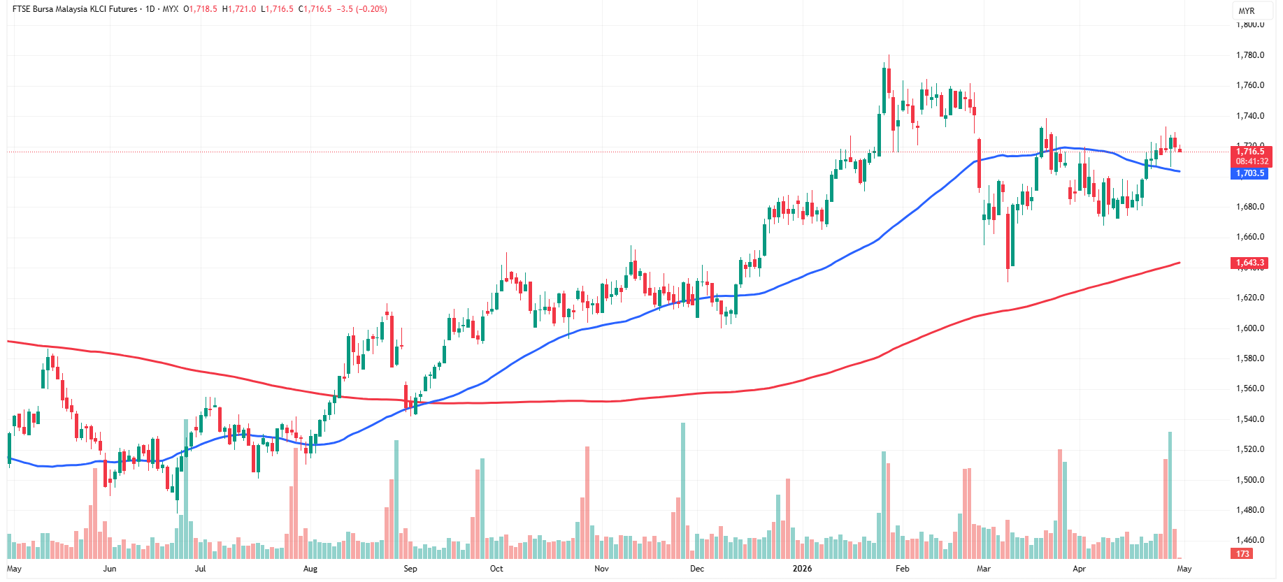FKLI April month losses -6.0 points or -0.35% to closed at 1721 on previous