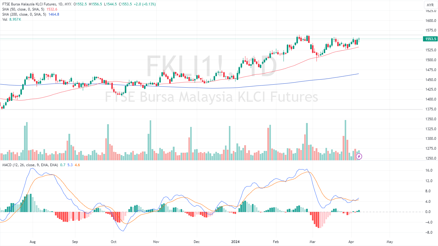 FKLI Apr month rose 2 points or 0.13% to 1553.5 closed higher. Bursa Malaysia traded in a tight range on Friday as investors exercised caution amid the negative performance across the region.